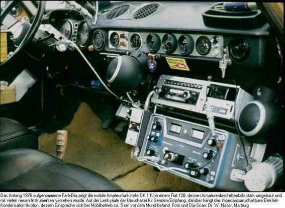 Ein Betrieb auf der beliebten 80-m-Wellenlänge (3.5...3.8 Megahertz) erforderte bei einer Stabantenne eine Mindestlänge von Lambda/4 = 20 m, die StVZO erlaubte jedoch nur mechanische Längen bis ca. 3 Meter. Durch eine sogenannte Ladespule (loading coil), die meist in der Mitte saß, erreichte eine solche 3-m-Mobilantenne die geforderte elektrische Länge für das 80-Meter-Band und konnte auch ohne spezielles Anpaßgerät (matching unit) von der Endstufe aus über 60-Ohm-Koaxkabel gespeist werden; trotz der hohen Verluste in einer solchen Ladespule und der geringen HF-(Speise-)Leistung von nur 50-70 Watt PEP (peak envelope power) erreichte meine KW-Dreiband-Mobilstation nicht weniger als 45 Länder im Telefonie-Verkehr. Die modifizierte New Tronics Hustler-Mobilantenne mit center loading coil war freitragend auf dem Kofferraumdeckel eines Fiat 128 montiert und arbeitete (auf 80 + 40m) mechanisch sicher bis etwa 100 km/h. An der Antennenspitze befand sich eine 220-Volt-Glimmlampe, die bei optimaler Anpassung und höchstem Output leuchtete und (in der letzten Ausbaustufe der Mobilstation) von einem separaten Außenspiegel (am Fiat 128) eingesehen werden konnte. Die Weitverkehrs-Verbindungen (DX) auf dem 20-m-Band (14 MHz) wurden aufgrund der speziellen Ausbreitungsbedingungen und der großen, verlustarmen Eigenbau-Ladespule im Stand abgewickelt.